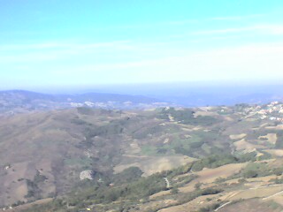 We follow him in our car and he doesn't make any apparent allowances for the non-Italian driver following him on the narrow and winding road....but we make it to his house without a problem. He lives on the edge of the village in a new three-unit condominium which is quite modern and attractive...but the best part is his terrace which looks out over one of those amazing Molise landscapes.